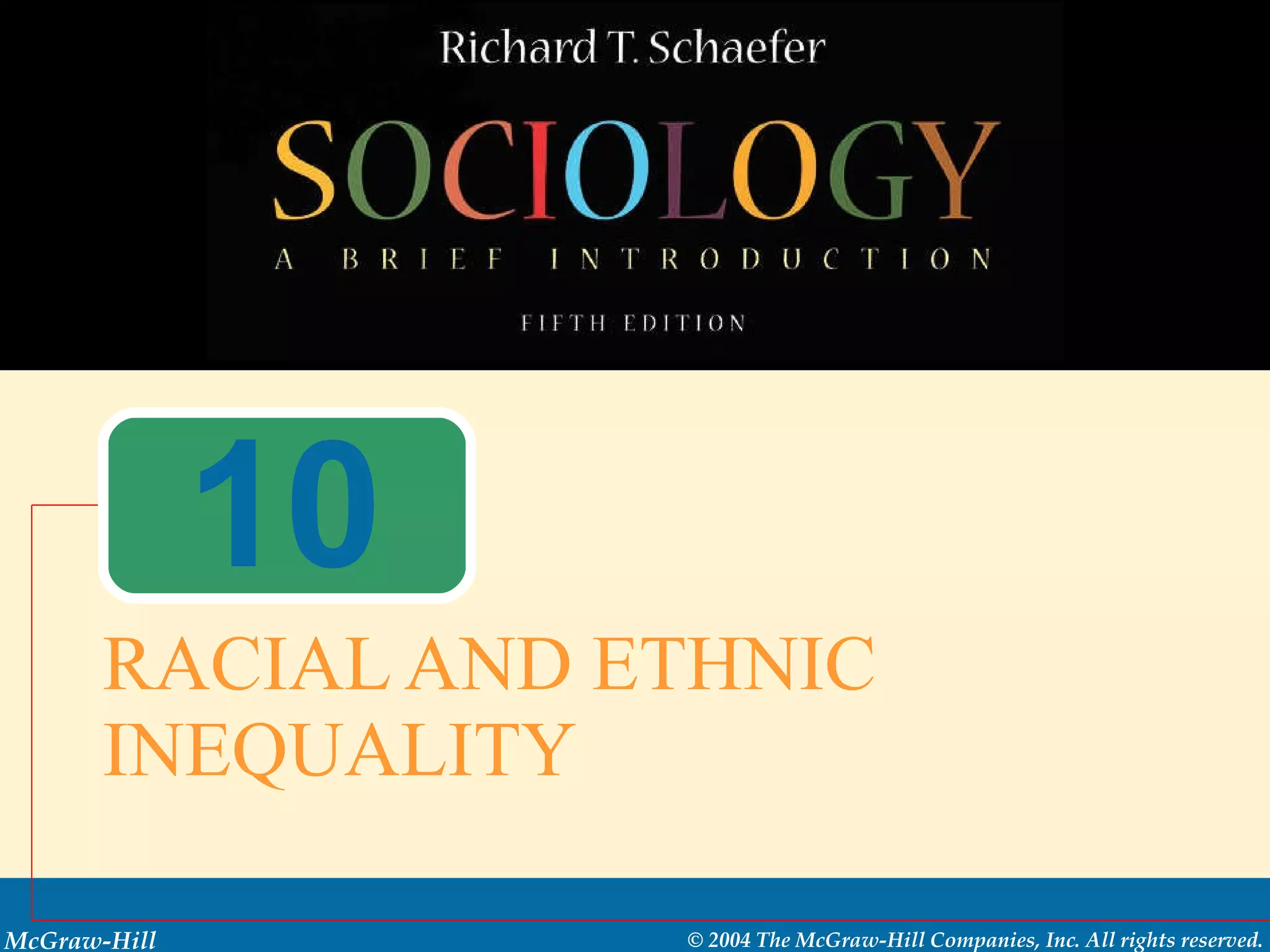 This document provides an overview of concepts related to racial and ethnic inequality. It discusses key terms like minority groups, racial groups, and ethnic groups. It also examines prejudice and discrimination, and how they are studied. Patterns of intergroup relations in the US are reviewed, including segregation and pluralism. Specific racial and ethnic groups in the US are also described, including policies around immigration and diversity.