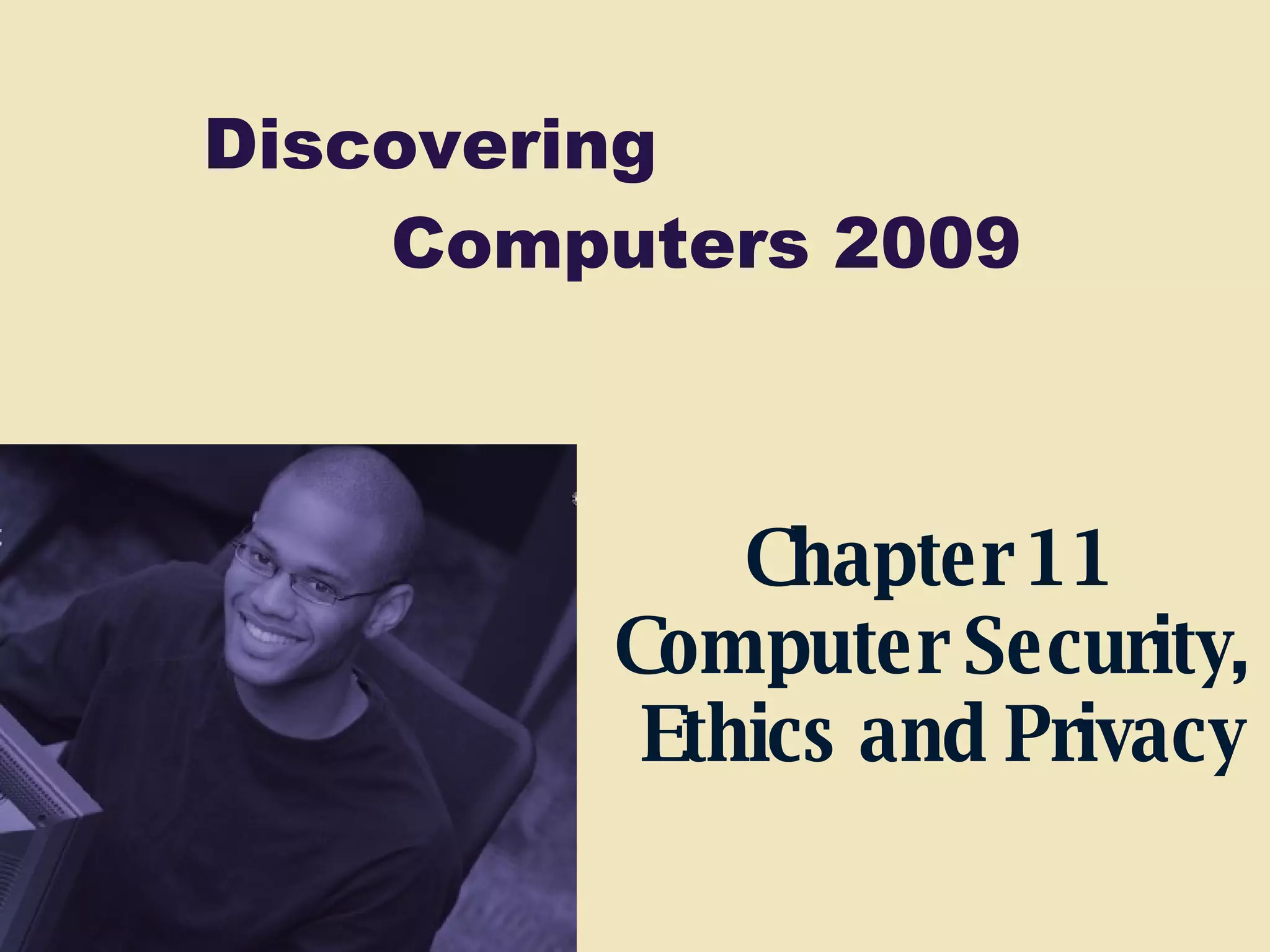 This chapter discusses computer security risks like viruses, worms and Trojan horses. It describes safeguards like antivirus software, firewalls and passwords. The chapter also covers ethics issues around information privacy, software piracy and computer use. Potential health issues from overuse like repetitive strain injuries are explained, along with ergonomic precautions and green computing practices.