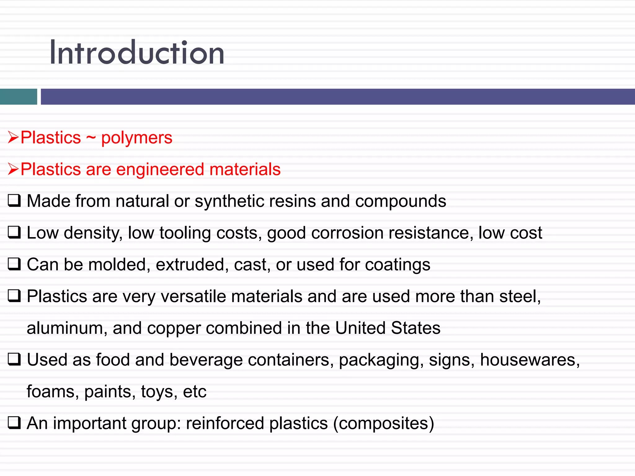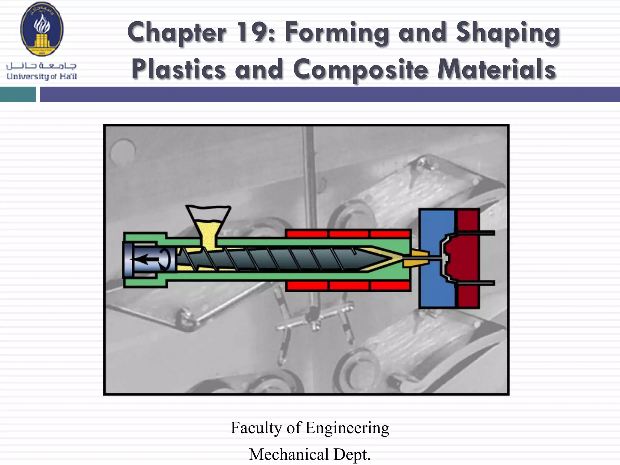 This document provides an overview of forming and shaping processes for plastics and composite materials. It begins with introductions to plastics and polymers, discussing their molecular structures and common types. Key plastic forming methods are then described in detail, including extrusion, injection molding, blow molding, rotational molding, thermoforming, compression molding, and transfer molding. Each method is defined, key process parameters are given, and examples of common applications are provided. The document serves as a comprehensive reference on the main industrial techniques for processing plastics into final products and parts.