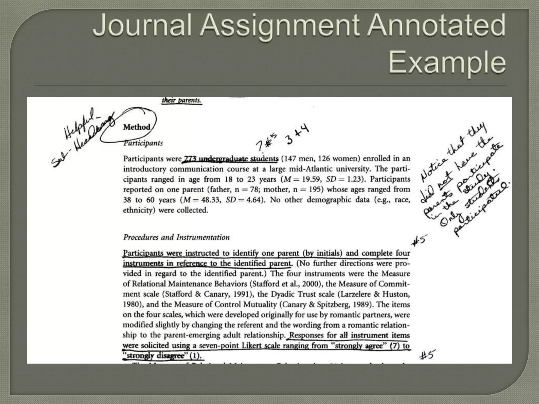 The document discusses different approaches to communication research including social science, interpretive, critical, and postmodern approaches. It provides an overview of the goals, views of reality and human behavior, primary methods, contributions, and limitations of each approach. Additionally, it discusses Likert scales, characteristics of academic research articles, and provides questions to guide evaluating communication research studies.