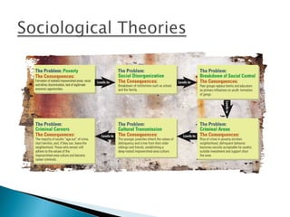 4. Explanations for trends in crime rates over time as well as relationships between crime and factors like race, poverty, and gender.