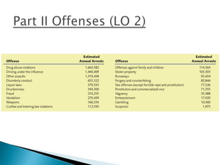 2. The differences between Part I and Part II offenses in the Uniform Crime Report.