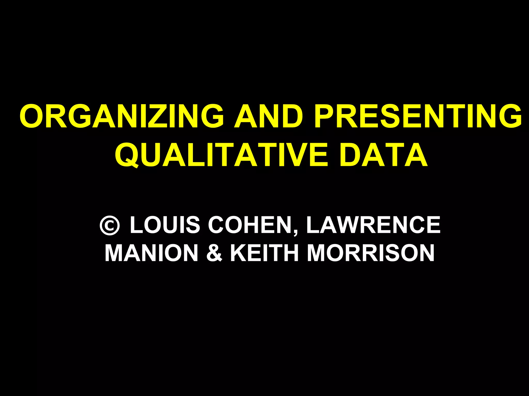 This document discusses various approaches to organizing and presenting qualitative data analysis. It outlines seven ways to organize data including by groups, individuals, themes, research questions, instruments, case studies, and narratives. Narrative and biographical approaches are described as a way to add context and perspective. Systematic approaches like comparing groups and analyzing deviant cases are also presented. The document provides examples of tactics and tools that can be used in qualitative data analysis such as counting frequencies, noting patterns, clustering, and content analysis techniques.
