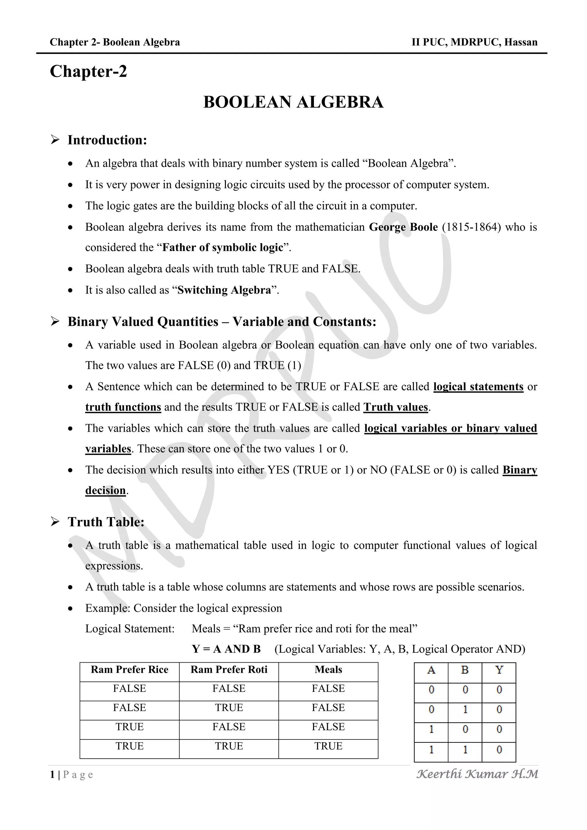 This document provides an introduction to Boolean algebra. It defines Boolean algebra as an algebra that deals with binary numbers and is useful for designing logic circuits. The document outlines some key concepts in Boolean algebra including binary variables that can only take the values 1 or 0, truth tables, and logical operators like AND, OR, and NOT. It also presents several theorems in Boolean algebra like the commutative, distributive, and absorption laws and proves some of them using truth tables.