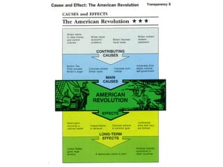 The document provides an overview of the American Revolution and early republic. It discusses the various acts passed by the British that angered the colonists and led to protests. Key events included the Boston Tea Party, Battles of Lexington and Concord, and the Declaration of Independence in 1776. After the Revolutionary War ended in 1783, the new nation struggled under the Articles of Confederation, leading to the Constitutional Convention of 1787 and the ratification of the U.S. Constitution. The first presidents Washington and Adams then helped establish the new federal government.