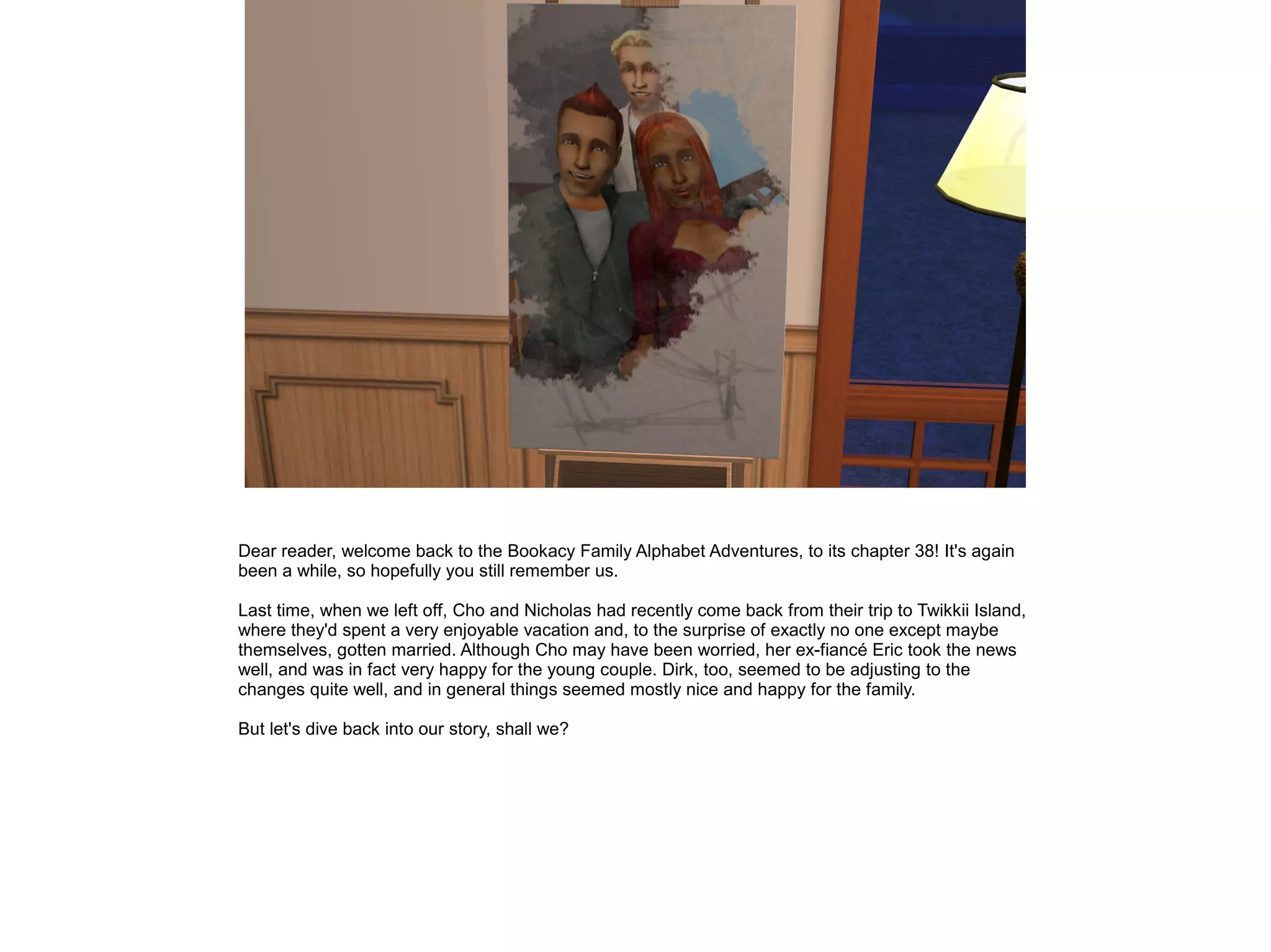 The document provides an update on the Bookacy family. Cho is pregnant with her second child. Nicholas continues progressing in his law career and sewing hobby. Dirk earns his first A+ report card and is accepted to a new private school. George spends time with his boyfriend Count Pao. Baudolino works to maintain a large circle of friends. The family looks forward to the new baby's arrival.