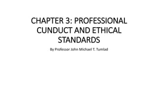 This document discusses professional conduct and ethical standards for members of the Philippine National Police (PNP). It outlines 14 elements of police professional conduct including commitment to democracy, public interest, non-partisanship, physical fitness, secrecy, social awareness, and proper use of public property. It also defines ethics and ethical standards that PNP members should adhere to, such as morality, integrity, justice, orderliness, and perseverance. The document provides definitions and explanations for each conduct element and ethical standard to guide PNP members in upholding the highest professional and moral values in service.