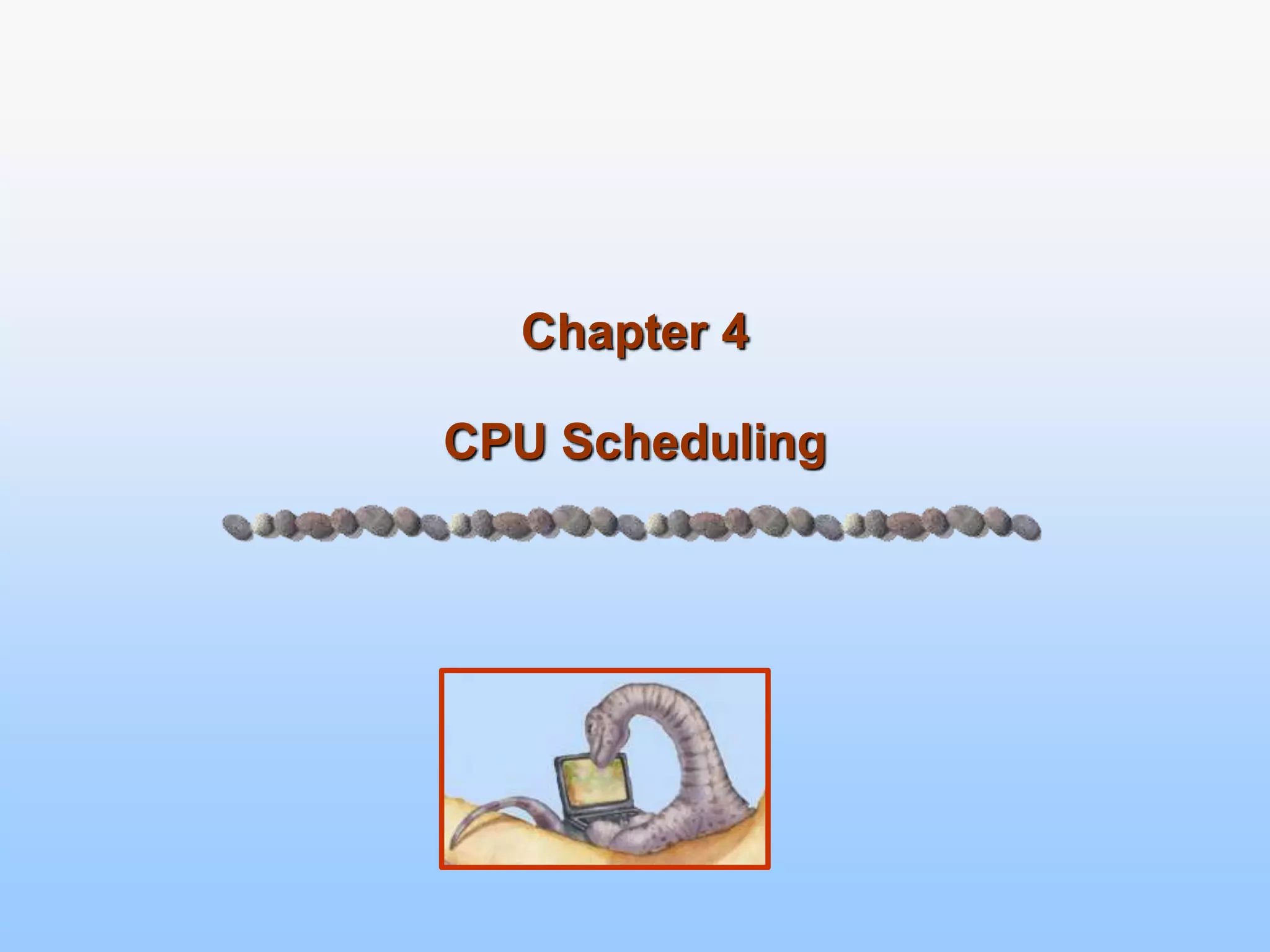 This document provides an overview of CPU scheduling concepts and algorithms. It discusses the goals of CPU scheduling including maximizing CPU utilization and minimizing response time. Common single-processor scheduling algorithms like FCFS, SJF, priority, and round robin are described. The document also introduces the concept of multi-level queue scheduling to handle different process types and priorities.