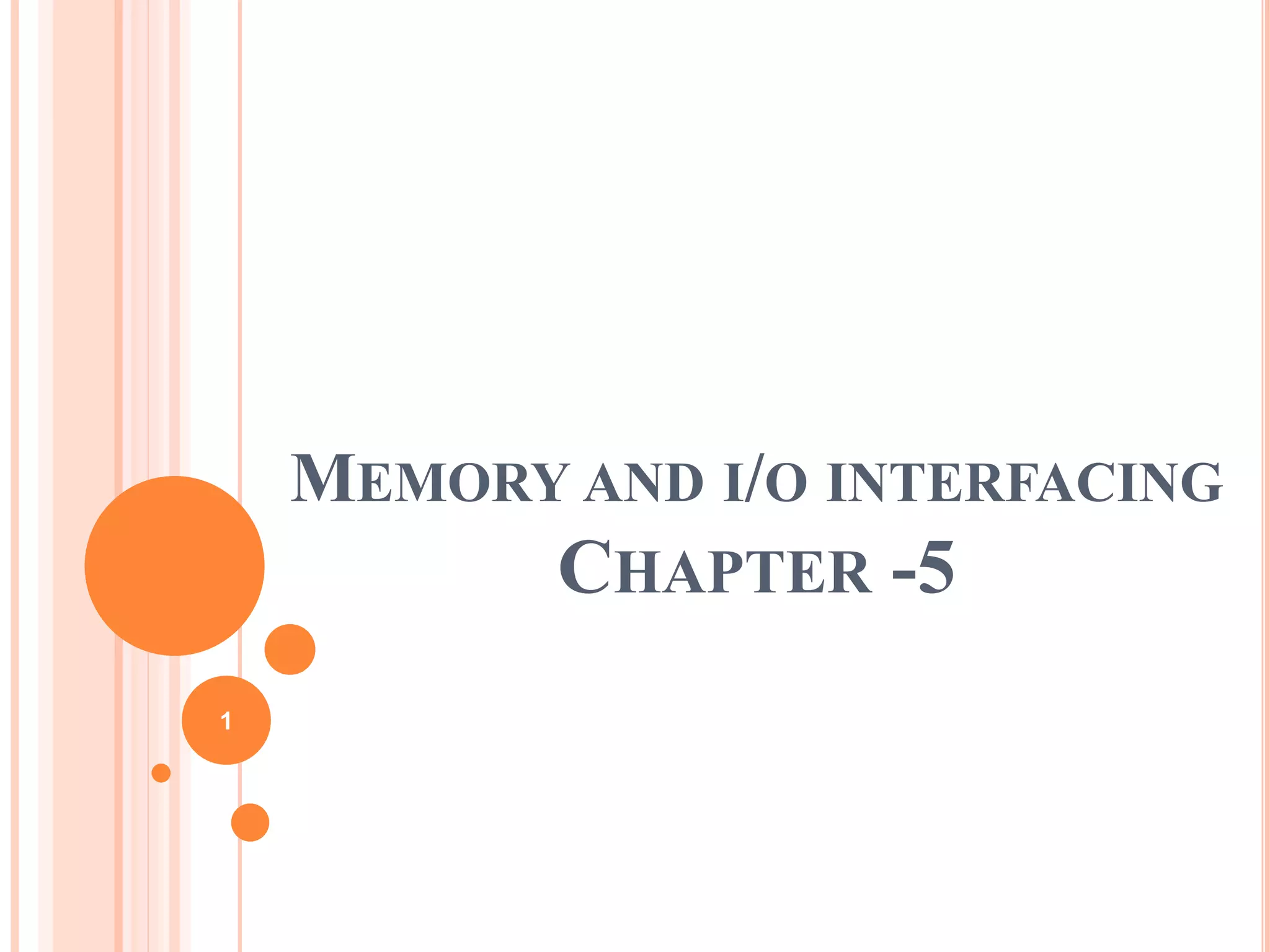 This document discusses memory and I/O interfacing using microprocessors. It describes how memory and I/O devices are interfaced by connecting data and address lines, as well as control signals. It also discusses the three main types of data transfer between microprocessors and I/O devices: programmed I/O, interrupt-driven I/O, and direct memory access. Additionally, it provides information on common I/O interface chips like the 8255 Programmable Peripheral Interface and the 8279 Keyboard/Display Controller.