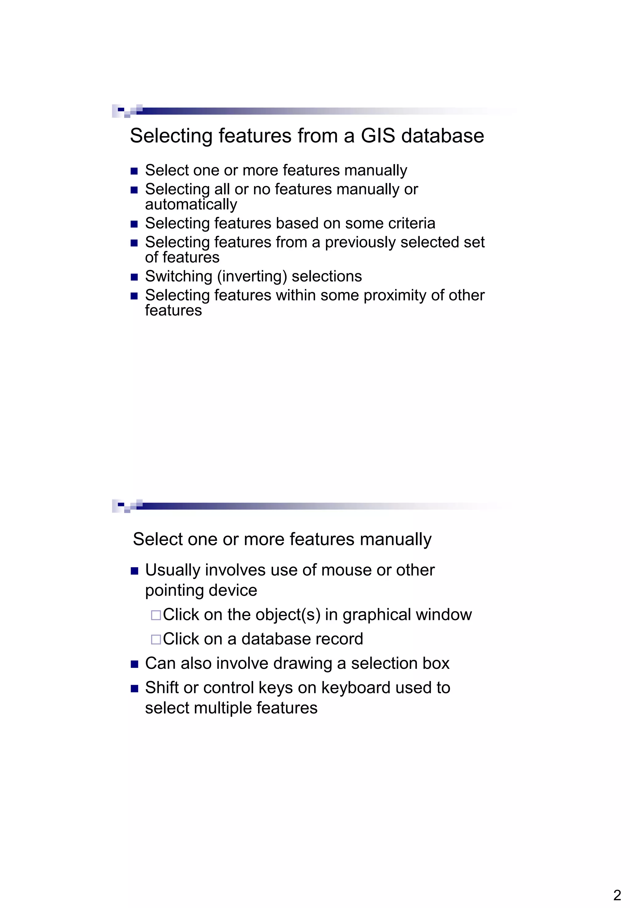 Chapter 5 of the book discusses methods for selecting landscape features from a GIS database, including manual and automatic selections based on specific criteria. It explains the concept of queries used to retrieve information about resources and highlights potential issues with query operations, such as syntax errors. The chapter also includes practical examples and considerations for effective feature selection and querying.