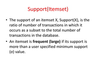 •Let D is the dataset, I is the set of all items in D, and Y is the