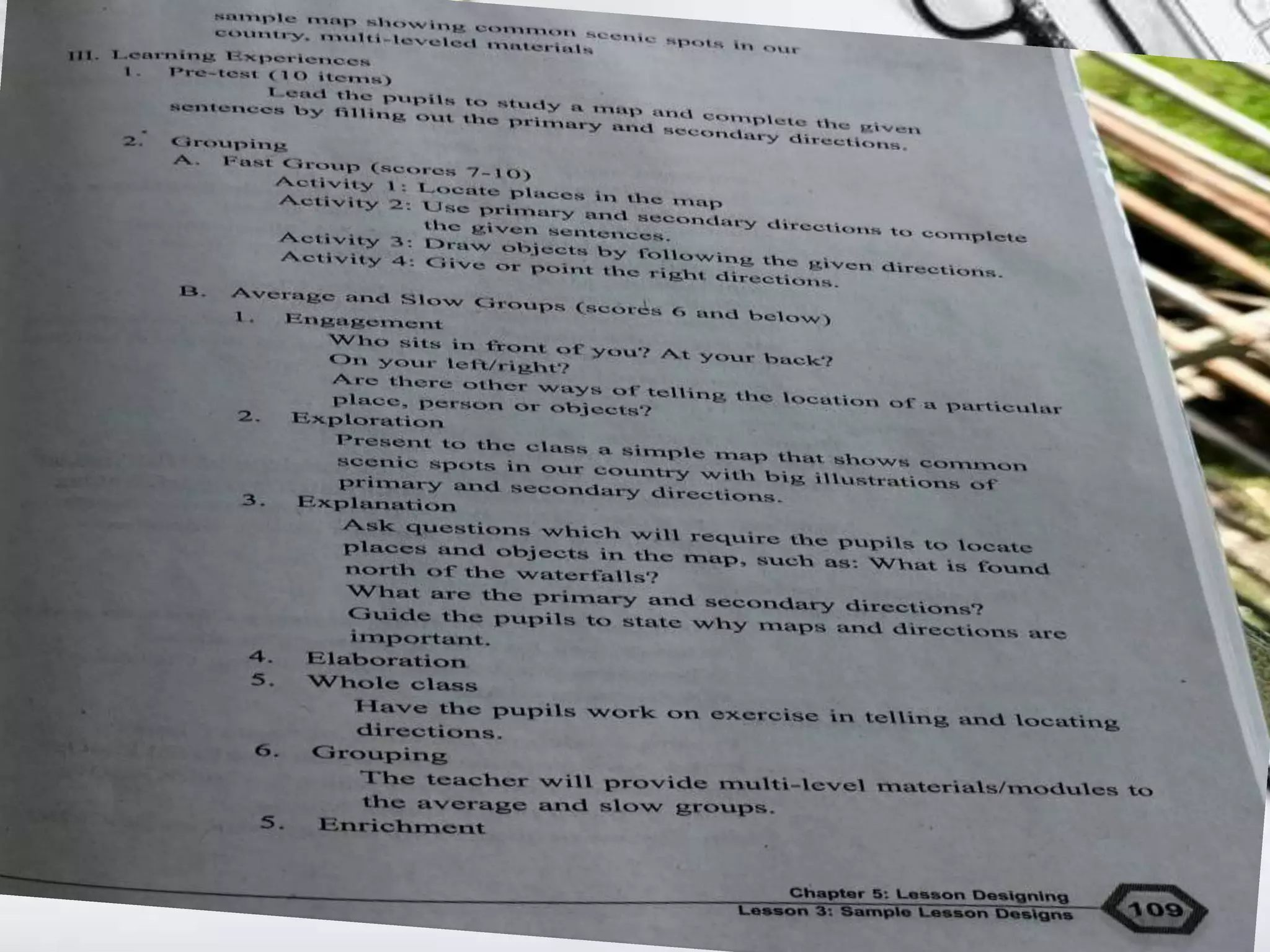lesson design or plan.