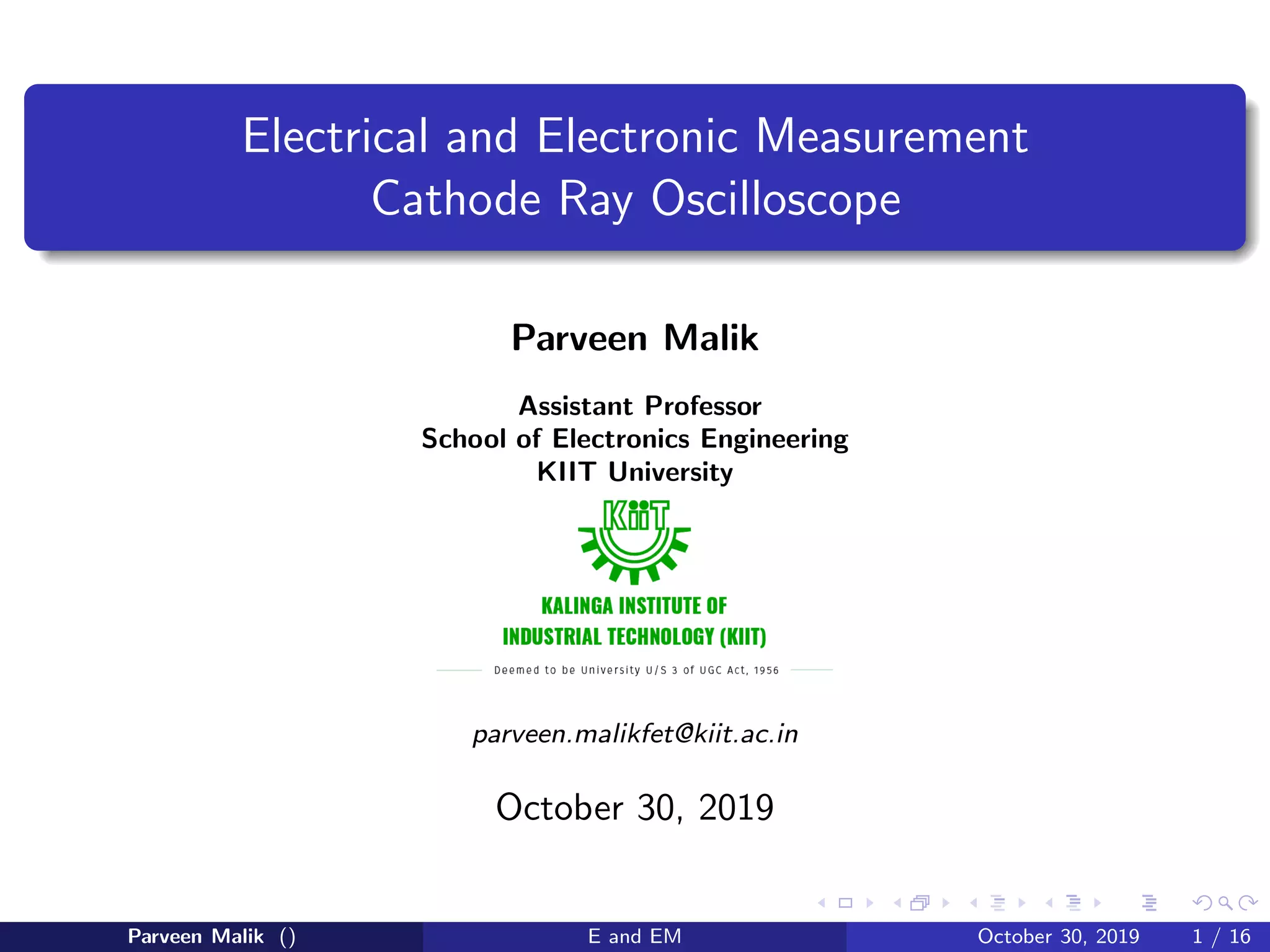 The document discusses the cathode ray oscilloscope. It describes the cathode ray oscilloscope as an electronic voltmeter used to display and measure peak voltage, frequency, phase difference, pulse width, delay time, rise time, and fall time. It outlines the topics of cathode ray tube construction, electrostatic lens, electrostatic deflection, and phase and frequency measurement. Lissajous patterns are discussed for measuring phase differences and frequencies.