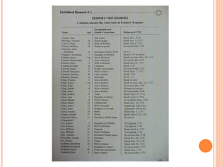 The document summarizes the founding of Georgia by the British in the early 18th century. It was established in 1733 by General James Oglethorpe as a buffer colony between South Carolina and Spanish Florida. The colony was governed by 21 trustees and had the stated goals of relieving unemployment, providing resources for Britain, and defense. Unstated was providing a home for persecuted Protestants. The document outlines the establishment of Savannah and other settlements, conflicts over land ownership restrictions and slavery bans imposed by the trustees, and wars with Spain in the 1730s-40s. In 1752, Georgia became a royal colony under direct control of the British crown.