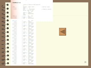 This document discusses programming techniques for microprocessors including modular programming using assemblers, linkers, macros, and libraries. It also covers using the keyboard, video display, and mouse through DOS and BIOS function calls. Specific techniques are illustrated through examples such as reading and displaying individual keys, reading a line of text, and using the mouse interrupt to control the pointing device.