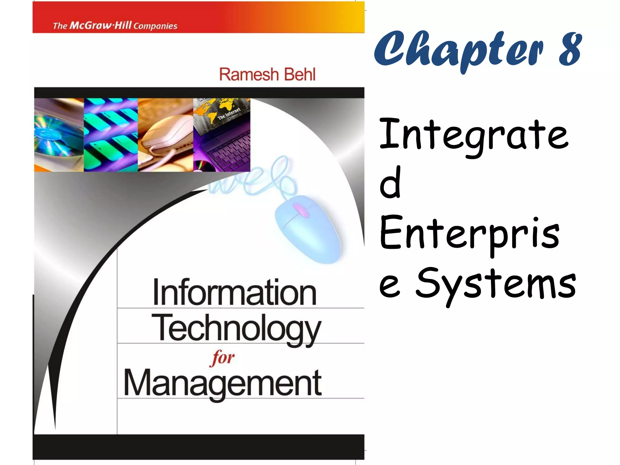 The document discusses integrated enterprise systems and their evolution over time. It describes how functional information systems created data silos within organizations. Integrated systems address this by capturing data at the source and allowing sharing across departments. Key integrated systems discussed include ERP, SCM, and CRM. ERP provides an integrated solution that spans accounting, finance, supply chain and other functions. SCM manages the flow of materials and information throughout the supply chain. CRM allows identifying, acquiring and retaining customers through multiple channels. The benefits of integrated systems include reduced data duplication and improved information sharing, but implementation requires aligning the system with business processes.