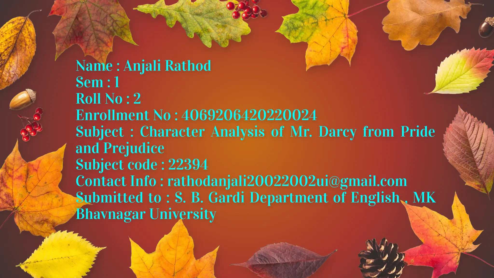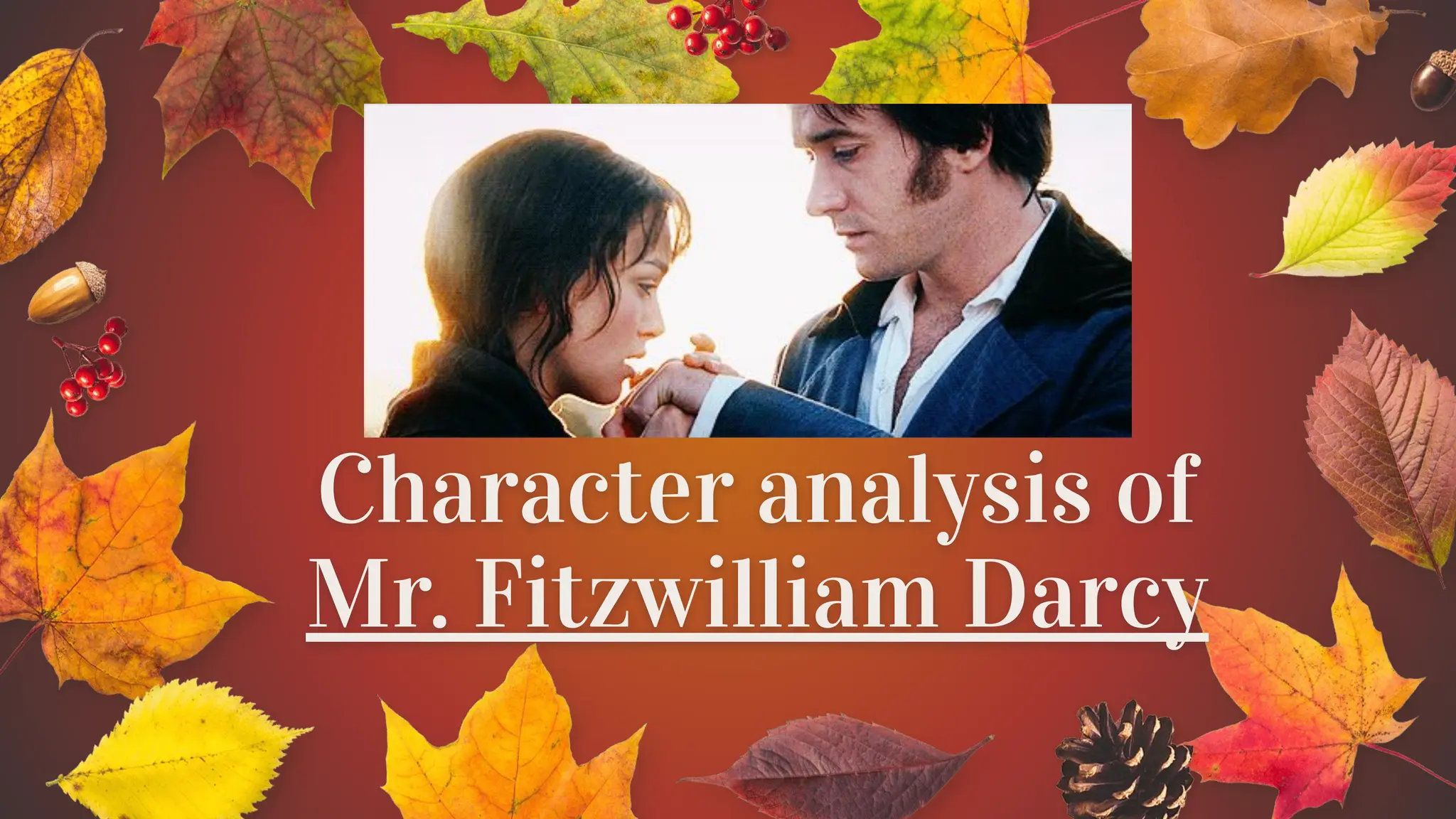 The document is a character analysis of Mr. Fitzwilliam Darcy from Jane Austen's 'Pride and Prejudice', highlighting his transformation from arrogance to politeness and the themes of pride and prejudice within the novel. It discusses Austen's background as a pioneering female novelist, her portrayal of social norms, and the character's development throughout the story. Additionally, it provides comparisons between Darcy and other characters, as well as references for further study.