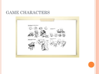 This document provides an overview of fundamentals for game character design and development. It discusses key topics like designing compelling characters, visual and behavioral attributes, character archetypes, and providing character growth. Specific examples are given like Darth Vader and how to design an avatar character. The goal of character design is to create characters that players can identify with, care about, and that drive the gameplay and story.