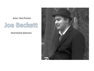 Alex Preston plays a hard-boiled detective investigating a case where the bad guy, played by Laurence Brown, crosses multiple characters' paths. The document provides casting information for two roles in a project called "Paths That Cross", with Alex Preston cast as the lead detective character and Laurence Brown cast as "the bad guy".