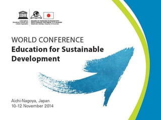 This document outlines a framework for advancing education for sustainable development (ESD) after 2015. It discusses how ESD can help update educational purposes and outcomes, strengthen curriculum, and guide students to solve future sustainability issues. The document also proposes priority action areas for ESD, including advancing policy, transforming learning environments, building educator capacity, empowering youth, and accelerating local solutions. It recommends establishing a global coordination mechanism to oversee ESD implementation through regional forums, UN agency coordination, and periodic reporting.