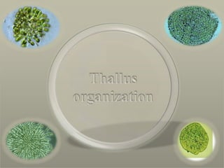 This document discusses the characteristics of charophyta, a division of green algae. Charophyta resembles plants and grows in muddy or sandy areas worldwide. They have a macroscopic plant body covered in a thick, brittle crust. The cells are prokaryotic, elongated, and contain discoid chloroplasts. Reproduction can occur vegetatively through amylium stars, bulbils, or protonema. Sexual reproduction is oogamous through specialized structures. There are 7 living genera containing 294 species classified in this division.