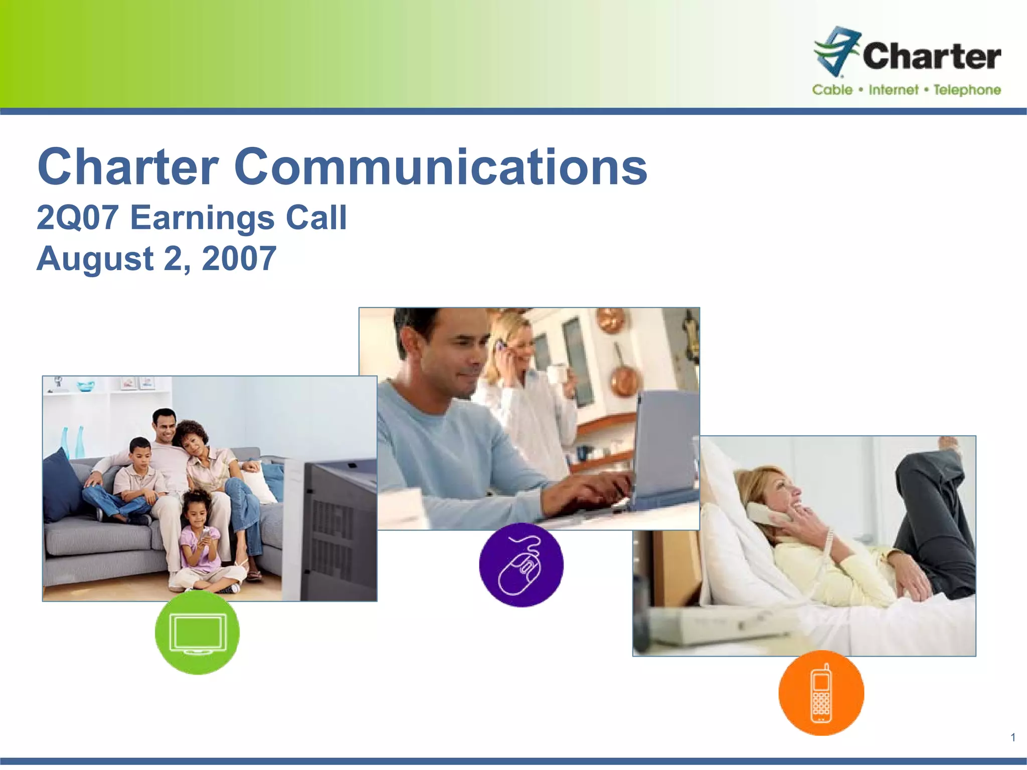 Charter Communications reported strong financial results for the second quarter of 2007, with double-digit revenue and adjusted EBITDA growth driven by increases in high-speed internet and telephone customers. Revenue grew 11% year-over-year to $1.498 billion, while adjusted EBITDA rose 11% to $539 million. The company saw strong growth in its bundled customer base and average revenue per user. Charter also continued the expansion of its advanced services such as HD and DVR set-top boxes.