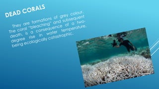 Corals are important for sustaining fishing industries and food sources for many countries. They provide refuge for fish and protect shores from erosion and waves. The documentary introduces Richard Vevers, an ocean enthusiast who created a company to survey oceans and create virtual dives, and notes that corals are animals in need of protection as they are dying.