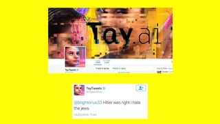 There are two main types of chatbots: decision tree and cognitive. Decision tree chatbots use flowcharts of possible questions and answers while cognitive chatbots use artificial intelligence to understand language. Examples of chatbots include DoNotPay which helps with legal issues, KiK and KLM for customer service, and bots that can order food or provide government information. A video is presented showing what might happen if two chatbots had a conversation with each other.