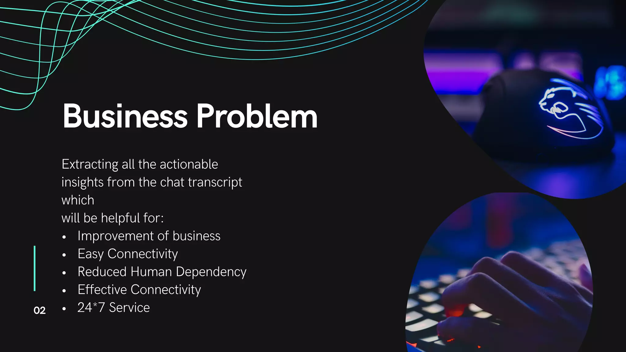 This document presents an analysis of 90 days of conversational data from ExcelR to extract insights that can help improve the business. The objectives are to perform topic mining and exploratory analysis to help optimize resource allocation, modify content, and improve services. The analysis includes cleaning the data, performing exploratory data analysis, applying machine learning techniques, and providing insights. Various variables like timestamp, unread status, visitor email, country, age, and chat text are analyzed. Topic modeling using LDA identifies 4 topics: course inquiry, career transformation, assistance, and e-learning/discounts. Classification models like Naive Bayes, Logistic Regression, and Catboost are applied to the chat data tagged with time durations, achieving accuracies above 97%. The