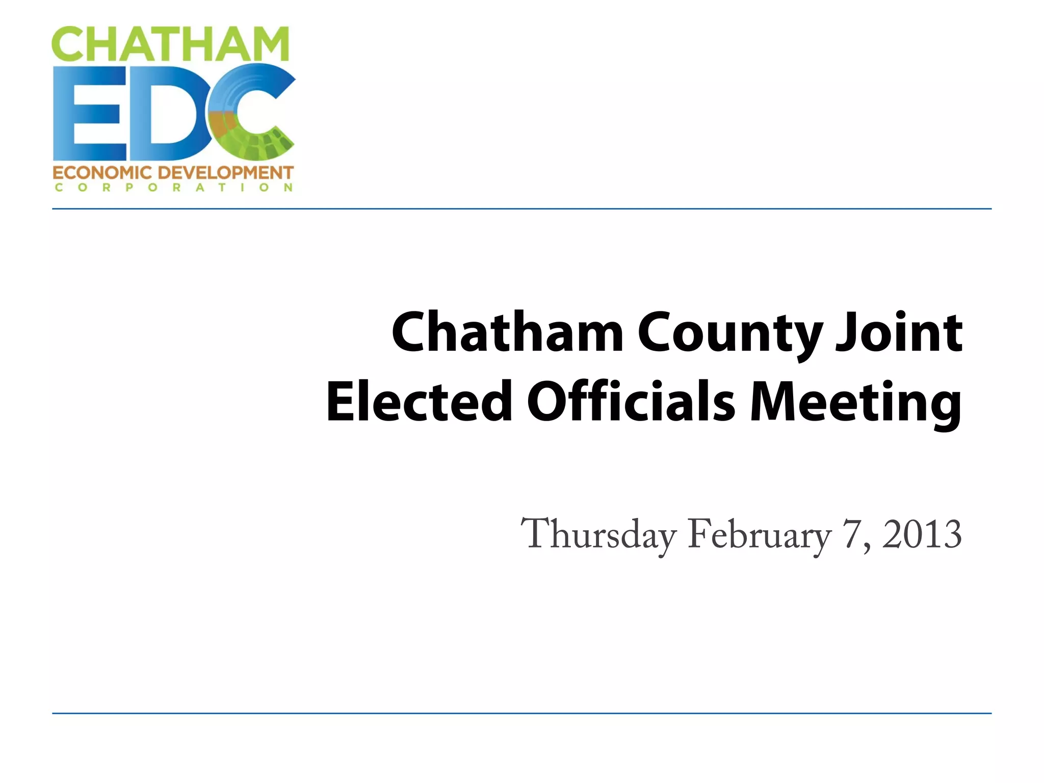 The Chatham County Joint Elected Officials meeting on February 7, 2013, focused on updates regarding the county's conceptual land use plan, discussing its goals, progress, and future input from stakeholders. Key topics included population growth, housing needs, economic development, and land usage. The planning process aims to create scenarios based on community input and is scheduled for completion by April 30, 2013, with final presentations to follow in May and June.