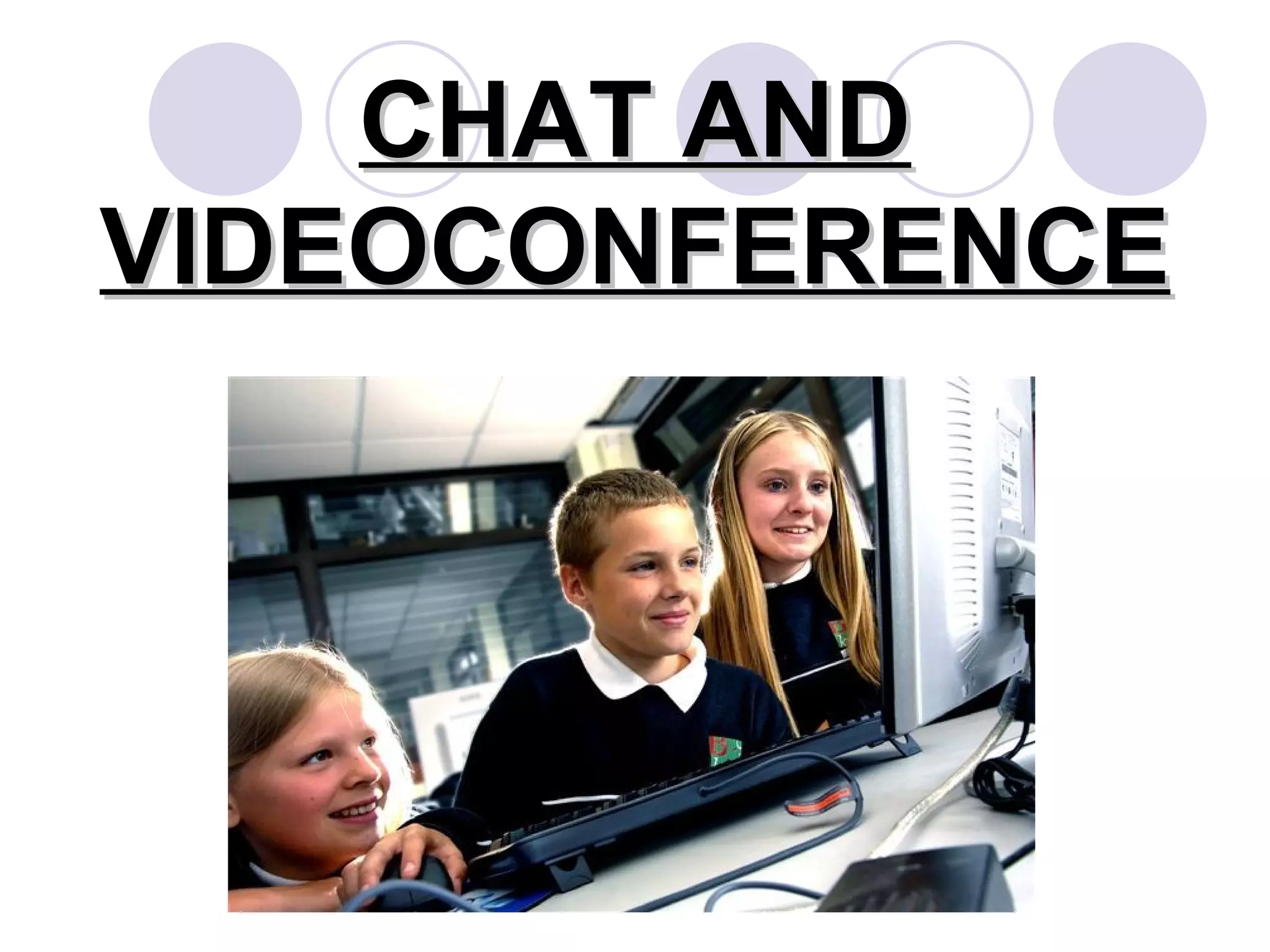 This document discusses the benefits of using chat and videoconferencing for language learning. It outlines ideal conditions for acquiring a second language, including opportunities for students to produce and receive feedback on the target language. The document also discusses how internet tools like videoconferencing and chat software can provide real-world interaction and exchange of information between language learners. Recommendations are provided for integrating online activities into language classes.