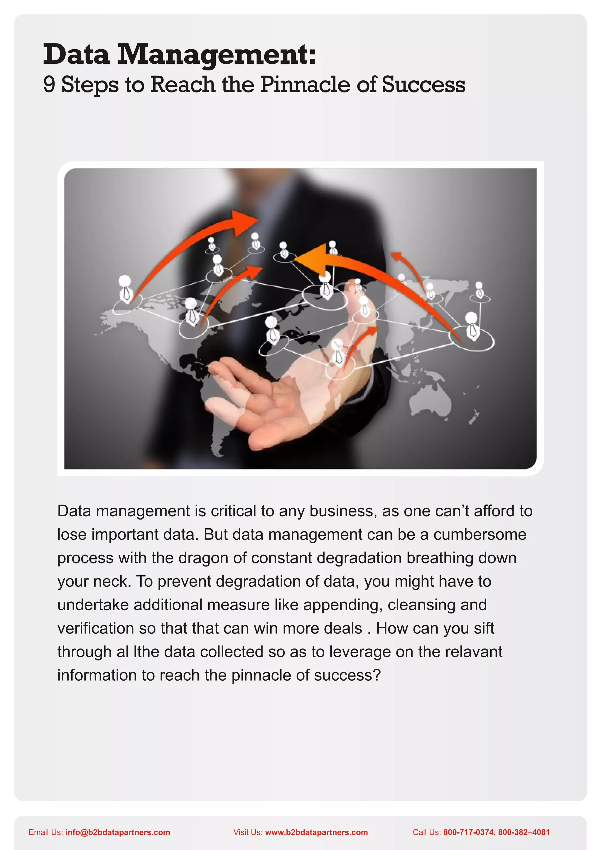 Data management is vital for businesses to prevent data degradation and ensure effective communication with customers. It's important to establish a solid data strategy, continuously update data quality processes, and gain stakeholder support for effective implementation. Leveraging technology and monitoring key metrics can help maintain data quality and keep you competitive in the market.