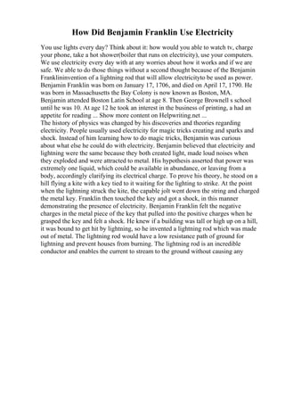The document discusses various topics such as plagiarism detection techniques, the contributions of Benjamin Franklin in the field of electricity, the women's suffrage movement in American history, and the societal impacts of the Vietnam War and World War II. It highlights the importance of understanding these subjects with a critical lens, while providing historical context and contemporary implications. Additionally, it compares hospitality brands like Marriott and Hilton and addresses themes of alienation in literature.