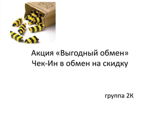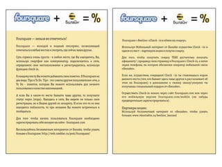 Акция «выгодный обмен» от Билайн предлагает скидки клиентам, зачекинившимся в кафе и магазинах через мобильный интернет. Участники акции должны зарегистрироваться на Foursquare, посетить заведение-партнер и показать чекин для получения скидки. Билайн организует поддержку акции через рекламу, фото-конкурсы и флеш-мобы в местах скопления целевой аудитории.