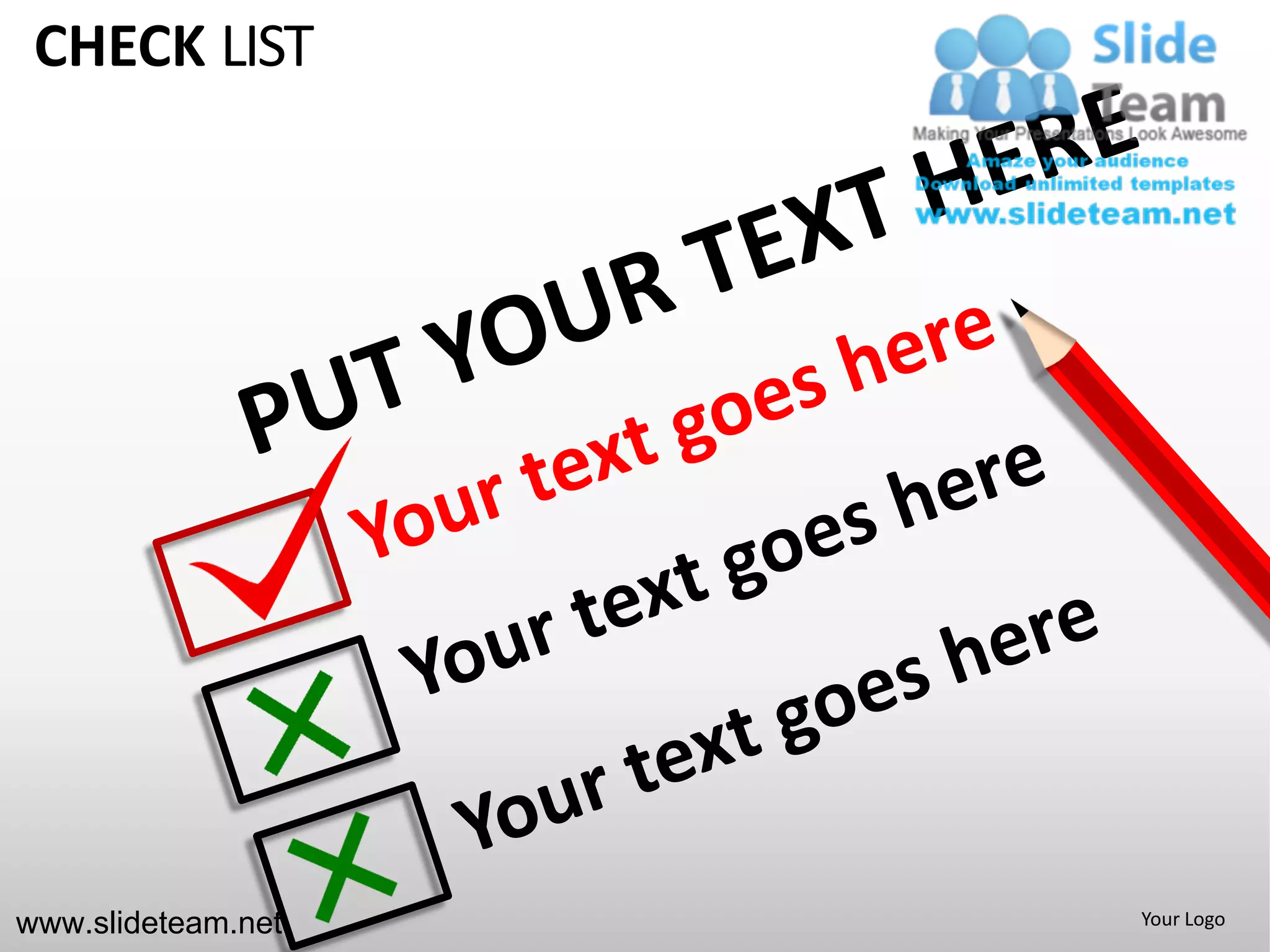 The document is a checklist template containing instructions for replacing sample text with own text. It includes sections for text, a to do list, and icons. The template can be customized by ungrouping objects to edit individually and changing colors using format shape options in PowerPoint. It encourages replacing sample text and icons with user's own materials to create a tailored checklist.