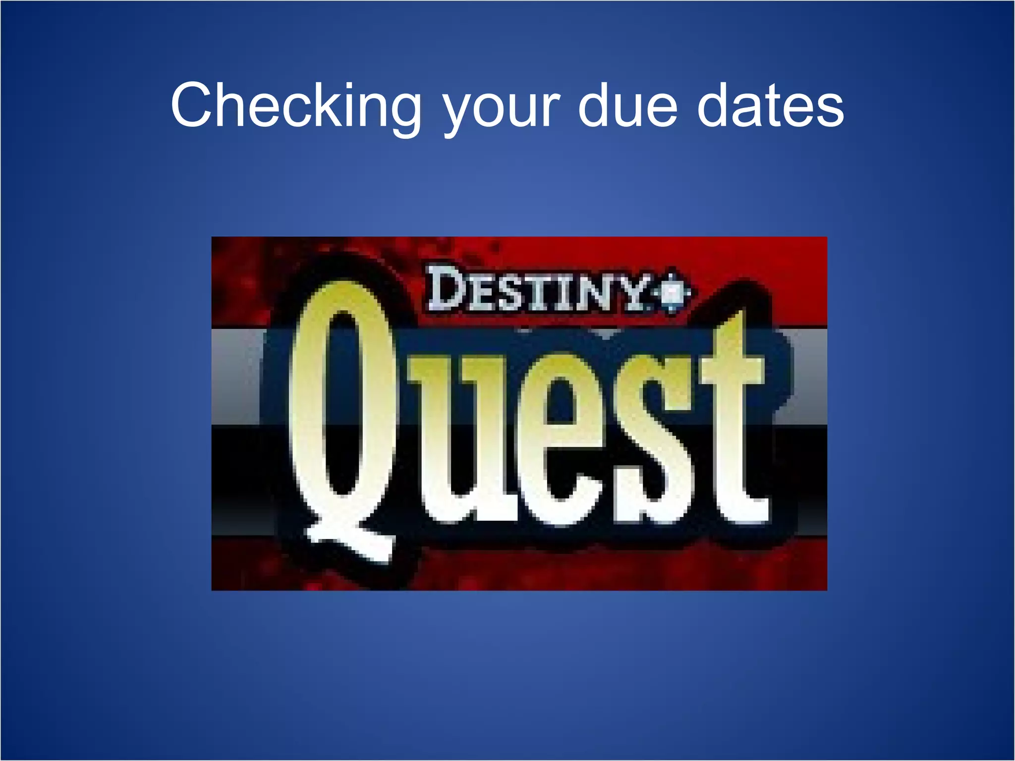 This document provides instructions for students to check due dates for library books in Destiny. Students should log into the Destiny link on the HS library website using their NHSD network username and student ID number as the password. Once logged in, students can find the due date for a book under the book title by clicking "My Info".