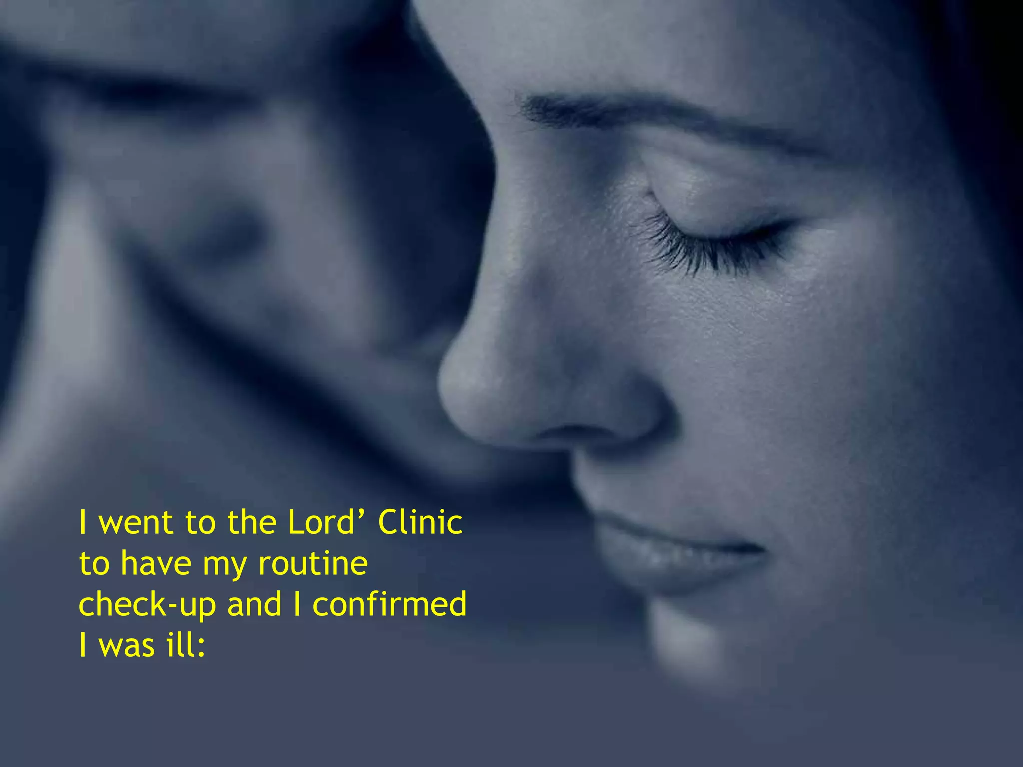 The narrator went for a routine checkup at the Lord's Clinic where various health issues were discovered. God found the narrator was low in tenderness, anxious, and their arteries were blocked by loneliness, causing an empty heart. They could not walk with or hug friends due to fracturing themselves through envy. They were also shortsighted and could not see beyond others' shortcomings. When complaining of deafness, the diagnosis was they had stopped listening to God daily. God provided a free consultation and natural remedies through daily gratitude, peace, patience, brotherhood, humility, love, and a clear conscience. The narrator was reassured of God's perfect purpose and understanding during life's storms.