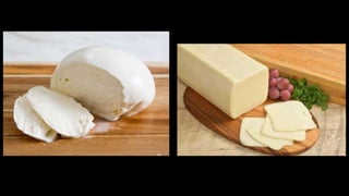 Cheese is a dairy product made from the coagulation of milk proteins, resulting in a variety of flavors, textures, and types depending on the production process and aging. Historically, cheese-making dates back to around 8000 BC, likely discovered accidentally through milk storage in animal stomachs. The cheese-making process involves steps like pasteurization, acidification, curd formation, and aging, with various types including fresh, soft, semi-hard, and hard cheeses, each with distinct characteristics and nutritional content.