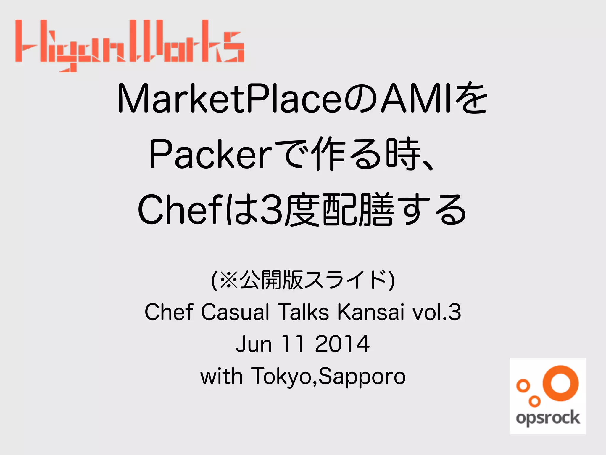 MarketPlaceのAMIを Packerで作る時、 Chefは3度配膳する ! (※公開版スライド) Chef Casual Talks