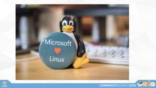 The document discusses the evolution of automation on Windows Server, Microsoft's involvement with open source, and how Chef can be used with Microsoft Azure and Windows. It outlines how Windows PowerShell has improved automation capabilities over time, and how Microsoft contributes to open source projects. It then describes how Chef can be used to provision Azure VMs, leverage test-kitchen for testing, and manage Windows nodes and workstations, while noting some challenges of remote management, security contexts, and performance.