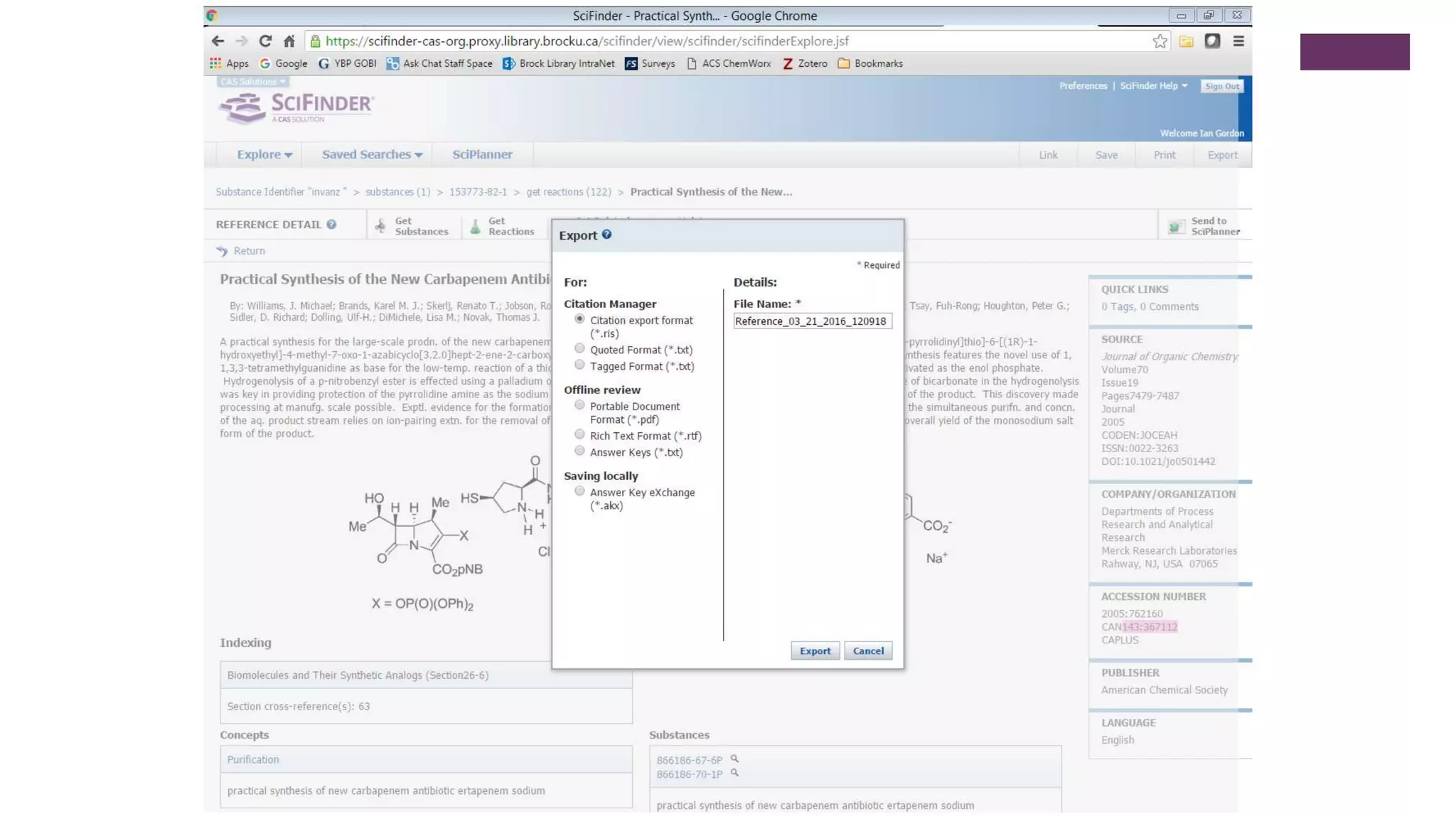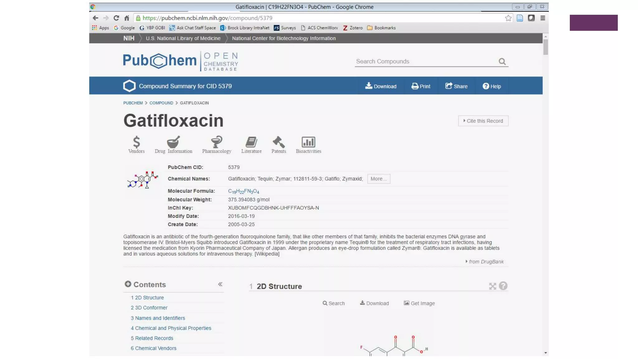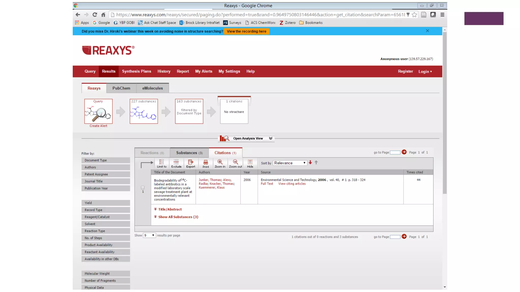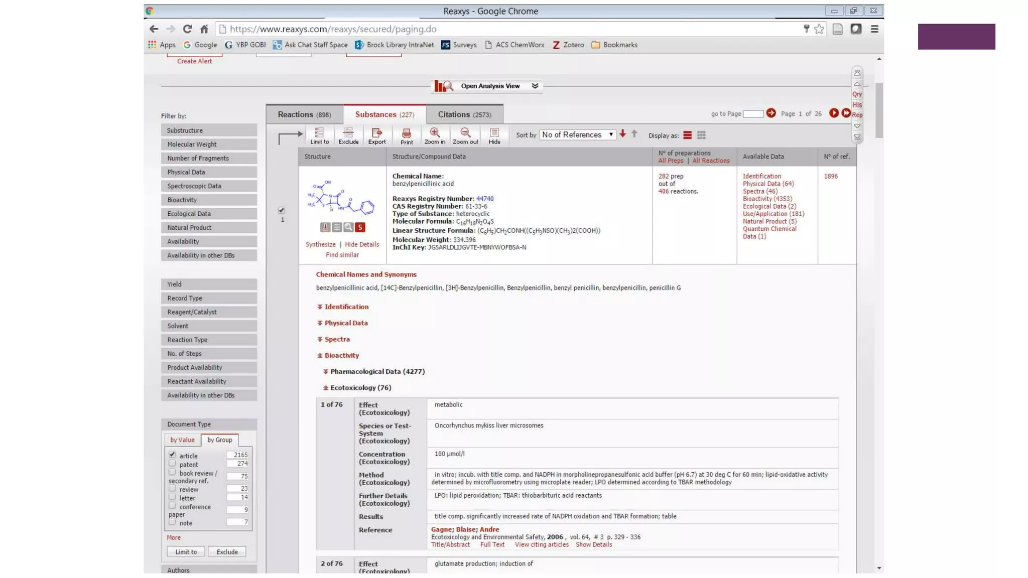 This document outlines an exercise to help students explore chemical literature and databases. It asks students to select an antibiotic or drug to research using tools like Reaxys, SciFinder, eCPS and ChemDraw. For the selected drug, students are asked to summarize its importance and bioactivity, identify a reaction that could be reproduced in the lab, discuss if a referenced reaction demonstrates green chemistry principles, and summarize a cited patent using one or two sentences. The exercise aims to help students learn search strategies and skills for exploring chemical properties, reactions, and scholarly information on small molecule drugs.