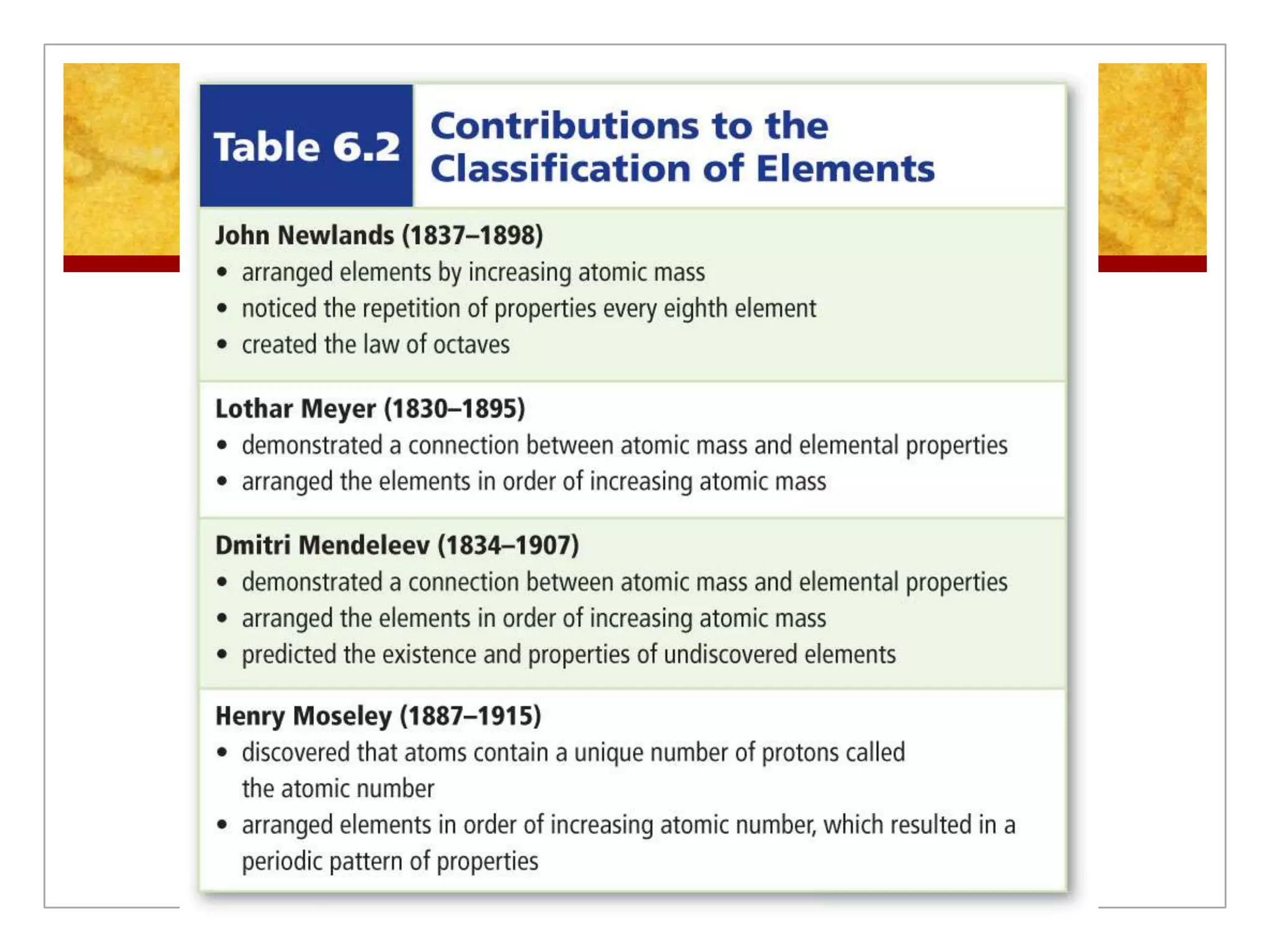 The periodic table evolved over time as scientists discovered more useful ways to organize the elements. Elements are organized into blocks according to their electron configurations, with trends in properties like atomic radius occurring from period to period and group to group. Atomic radius generally decreases left to right as nuclear charge increases, and increases down a group as the outer orbital size increases. Ionic radius follows similar trends but is smaller for positive ions and larger for negative ions due to electron gain or loss.
