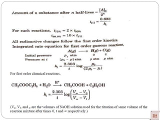 The document provides a comprehensive overview of chemical kinetics, detailing the rate of reaction, factors affecting it, and methods of measuring reaction rates. Key factors include temperature, concentration, pressure, and the presence of catalysts, with various examples illustrating fast, moderate, and slow reactions. The document also discusses rate laws, the order of reactions, and how these variables interact through experimental methods.