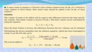 - Common units for concentration include percentage by mass/volume, molarity, and parts per million or billion.