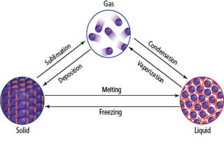 This document discusses key concepts from the first, second, and third laws of thermodynamics. It begins by defining spontaneous and reversible processes, explaining that spontaneous processes have a natural direction while reversible processes can return a system to its initial state. It then introduces entropy, describing how it increases for spontaneous processes based on the second law of thermodynamics. The document also discusses entropy at the molecular level and how it relates to temperature, phase changes, and the number of possible microscopic arrangements. Finally, it covers how entropy is used to define free energy and how free energy changes can indicate whether a process is spontaneous.