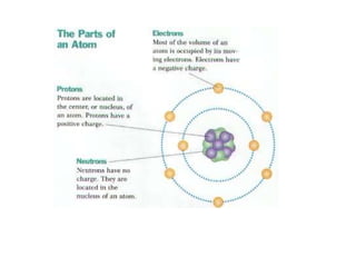 The document summarizes key concepts in chemistry including the composition of matter, elements and atoms, electrons and electron configuration, compounds, chemical bonds, properties of water, solutions, and acids and bases. Matter is composed of elements which are made of atoms. Atoms consist of protons, neutrons, and electrons. Elements combine through chemical bonds to form compounds with unique properties. Water is an important solvent that forms hydrogen bonds and has unique physical properties. Solutions are uniform mixtures where one substance dissolves in another. The pH scale is used to measure acids and bases according to their hydrogen and hydroxide ion concentrations.