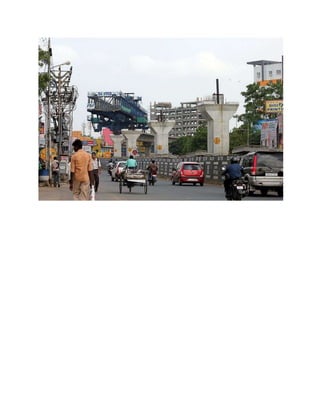 The Chennai Metro Rail is a rapid transit system under construction in Chennai, India. Phase I consists of two corridors covering 45.1 km, with 55% underground and 45% elevated. The first section is scheduled to open in 2013, and completion is slated for 2015. The metro aims to improve transportation for Chennai's growing population and industry, including its large automobile sector. Future phases could expand the network to over 100 km.