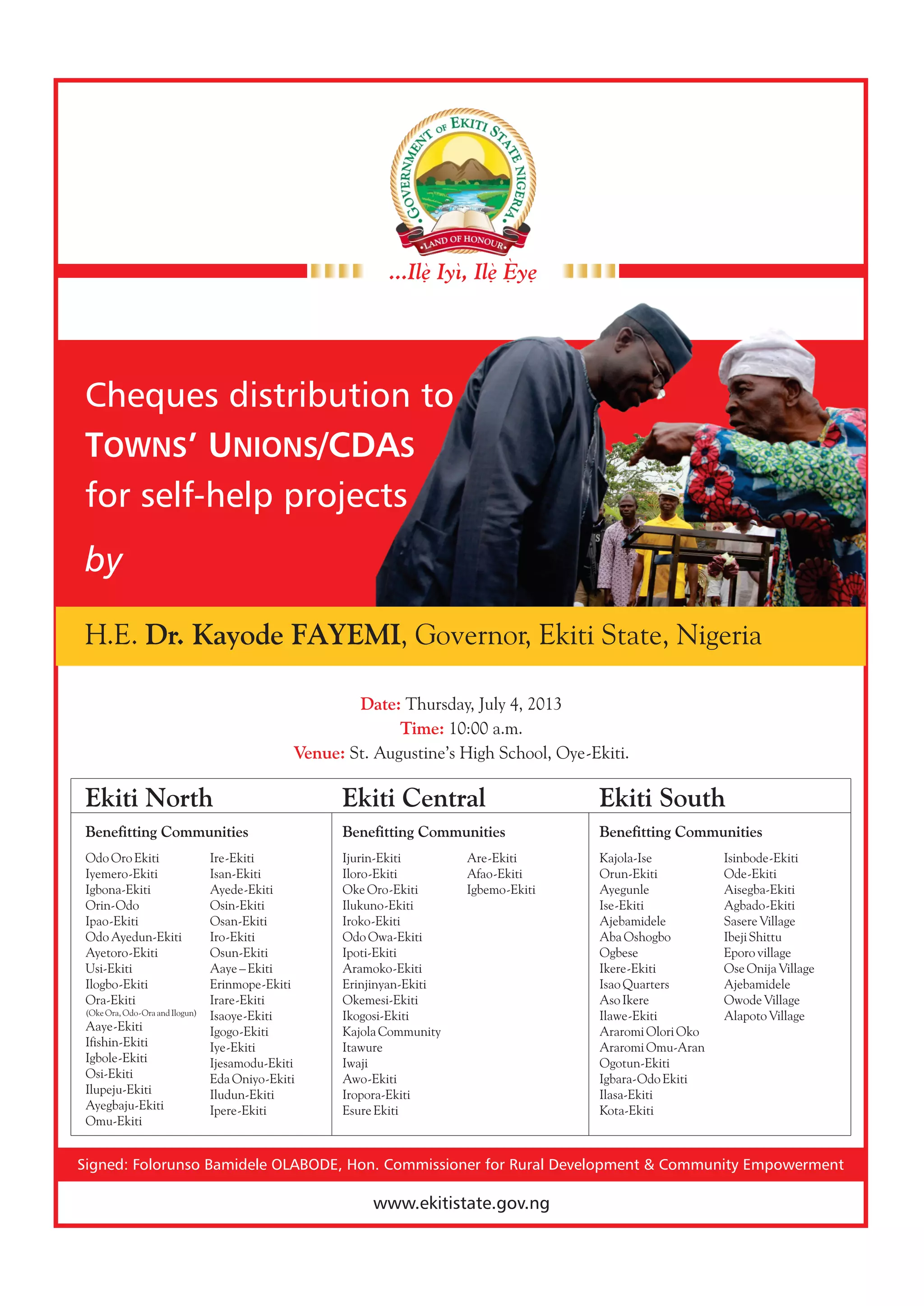 Cheque Distributions to Towns/CDAs for self-Help Projects