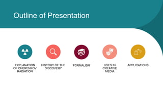 Cherenkov radiation is electromagnetic radiation produced when a charged particle exceeds the speed of light in a dielectric medium, creating a cone of blue light through a process akin to a sonic boom. Discovered by Pavel Cherenkov in 1934, its applications span from nuclear reactor safety to astrophysics and particle physics experiments. Despite common misconceptions, Cherenkov radiation is depicted inaccurately as green in media; it actually emits a distinct blue glow.