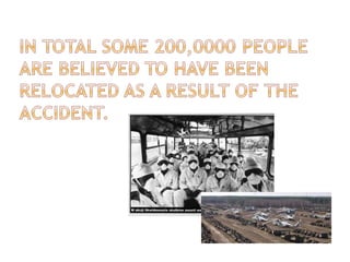 Chernobyl is located on the border between Ukraine and Belarus. In April 1986, a testing error caused an explosion at the Chernobyl nuclear power station, releasing 190 tons of radioactive gases. Despite the disaster, Soviet authorities waited over 36 hours to evacuate the area, exposing children and others who remained. The radiation spread over much of the northern hemisphere and contaminated 150,000 square kilometers across Belarus, Russia, and Ukraine, exposing over 7 million people.
